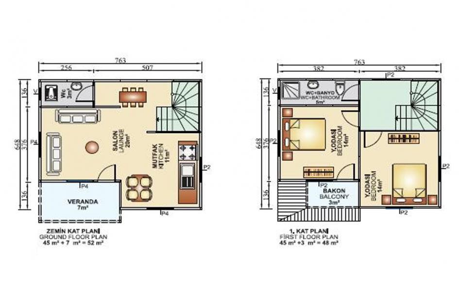 100 m2 Çift Katlı Prefabrik Ev