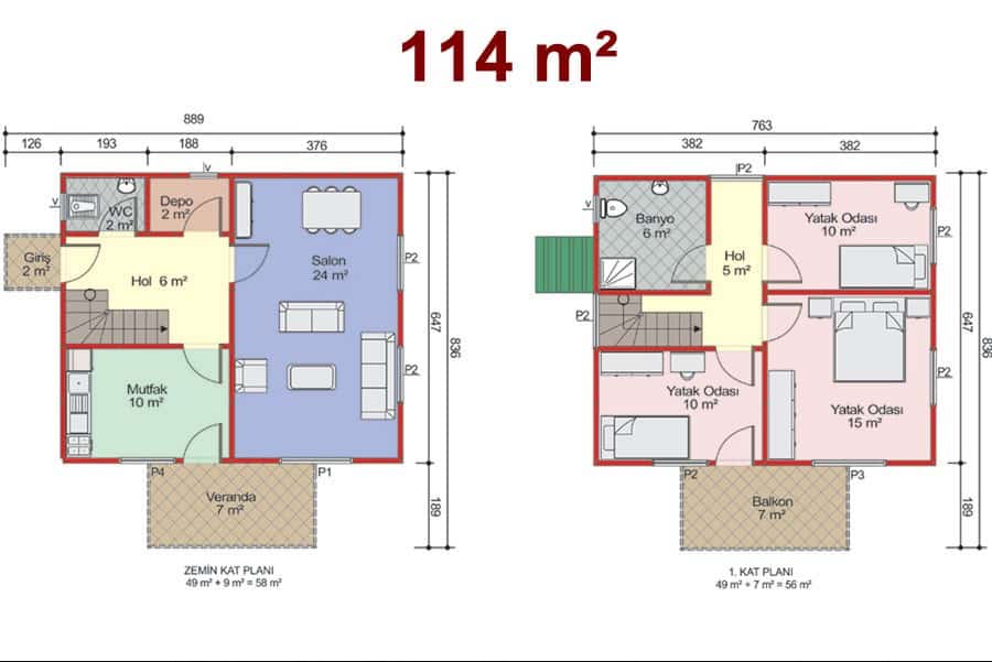 114 m2 Çift Katlı Prefabrik Ev