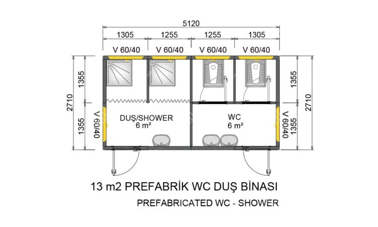 13 m2 Prefabrik WC Duş