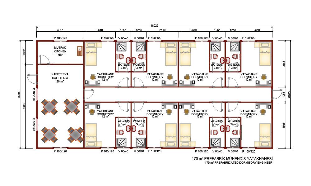 170 m2 Prefabrik Mühendis Yatakhane