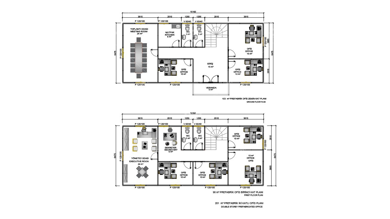 201 m2 Prefabrik Ofis