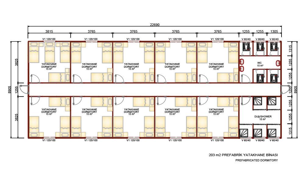 203 m2 Prefabrik Mühendis Yatakhane