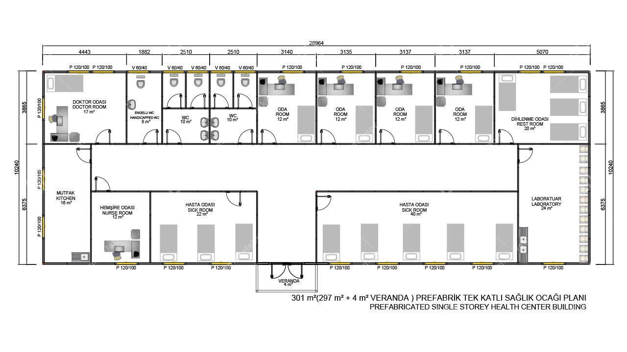 301 m2 Prefabrik Sağlık Ocağı Binası