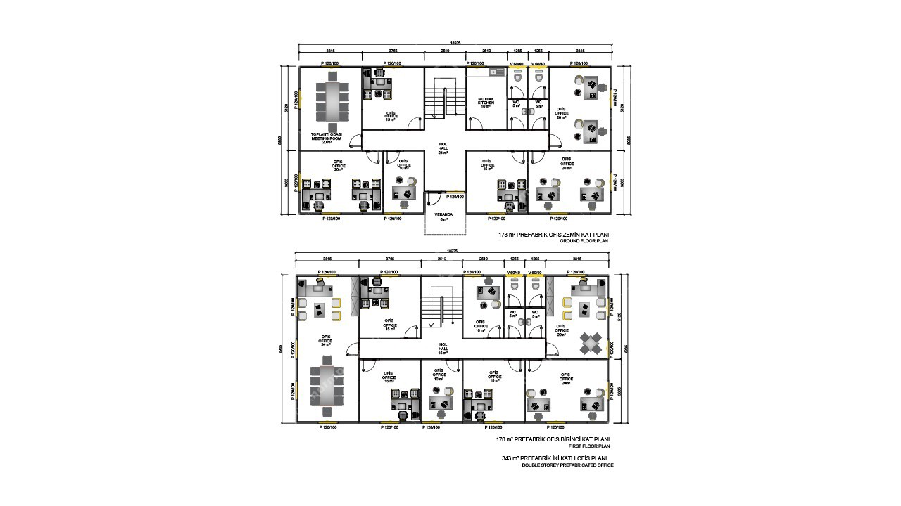 343 m2 Prefabrik Ofis