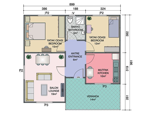 84 m2 Tek Katlı Prefabrik Ev