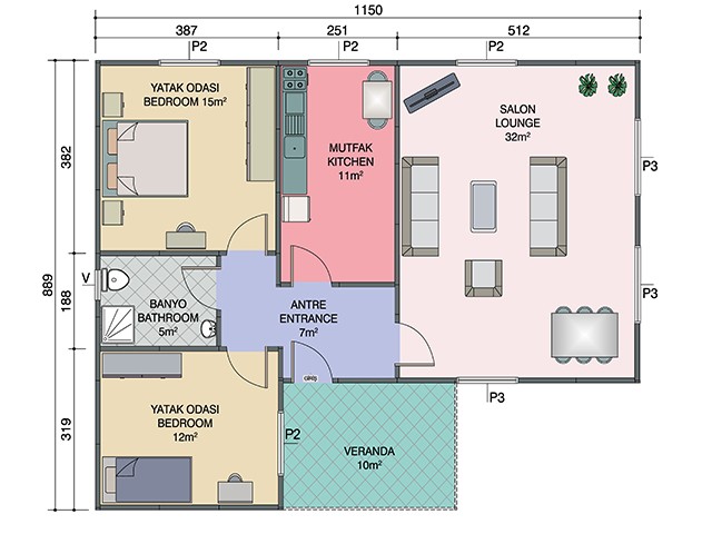 93 m2 Tek Katlı Prefabrik Ev
